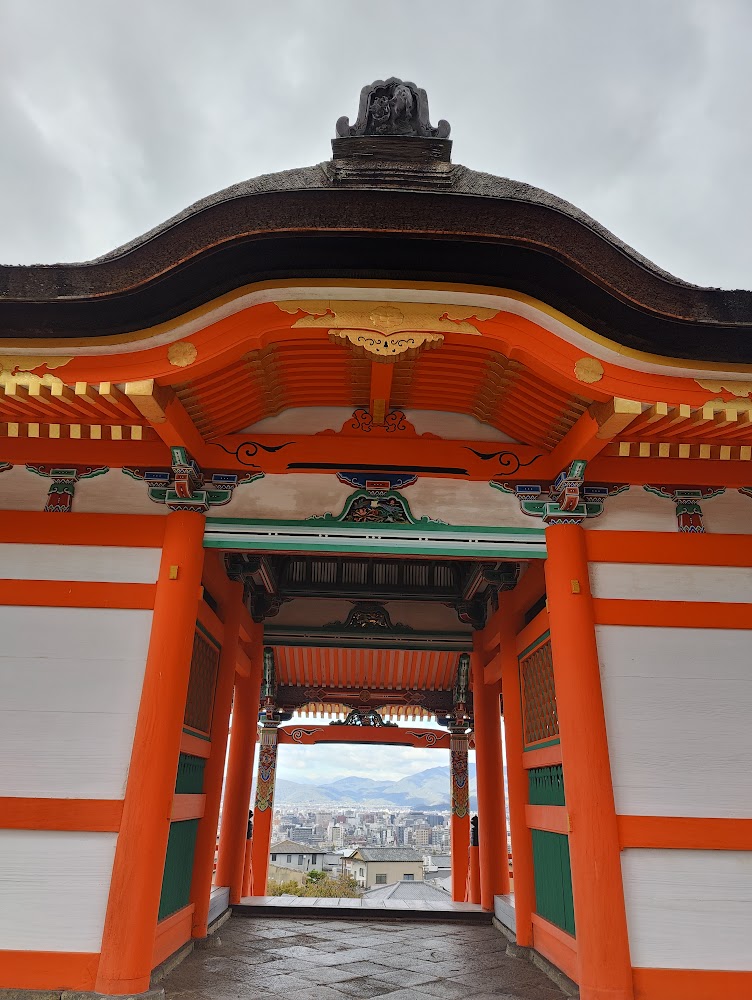 Kiyomizudera (清水寺) is probably the most famous temple in Japan. It was certainly the busiest! Like many Buddhist temples we visited, it's not a single building but several different temple buildings in a complex. It's built entirely with Japanese carpentry techniques that don't use nails.