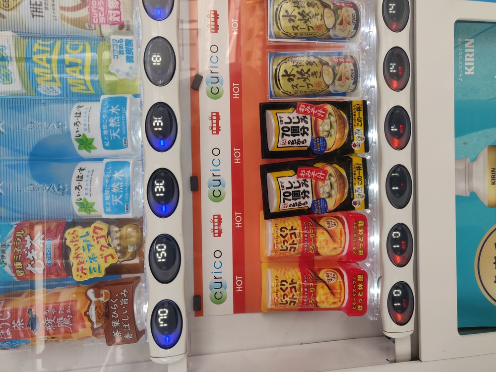 Vending machines were everywhere in Japan! Most of them were drink vending machines, with hot and cold tea and coffee in a variety of flavors. We only saw a handful of non-drink vending machines, like these that sold ice cream, soup and fresh squeezed orange juice.