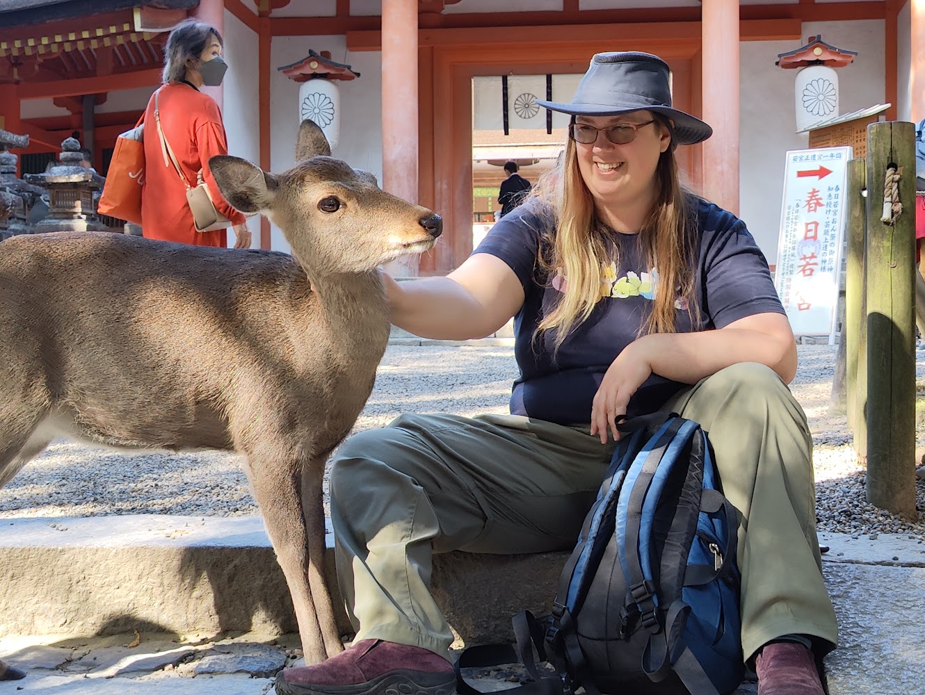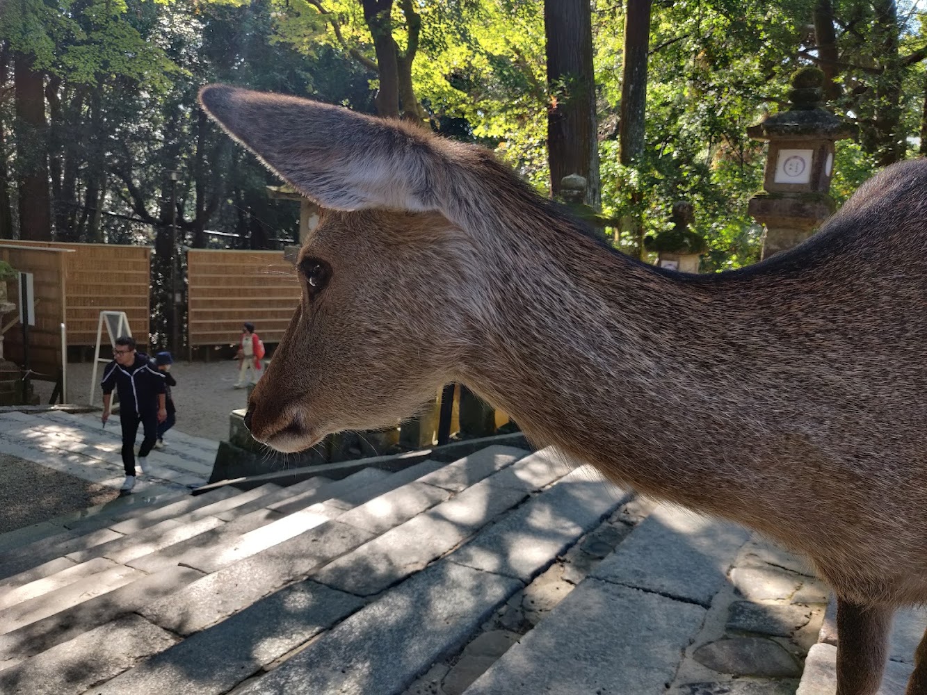 The other thing Nara is famous for is the deer! The deer are believed to be messengers of the Shinto gods and left to roam freely, but the only message we noticed was a strong desire for deer biscuits from tourists. They're very polite and know to bow to get a deer biscuit. The deer around the shrines were pretty chill, but in the park were roving gangs of deer waiting to find an unsuspecting tourist with deer biscuits and nip at them until they dropped the whole package of deer biscuits and fled.
