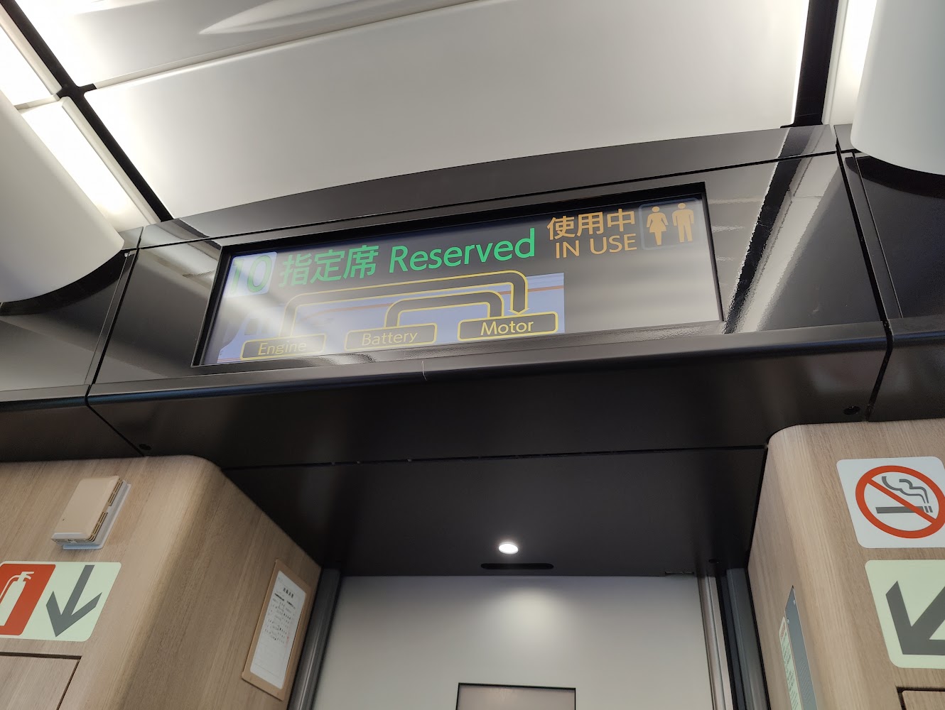 Takayama is not a major destination, and the second train was much smaller, slower and bouncier than the first. Unlike the all-electric Shinkansen (and local trains in Tokyo), this one was a hybrid, with a cute little display showing when it was using/charging the battery.