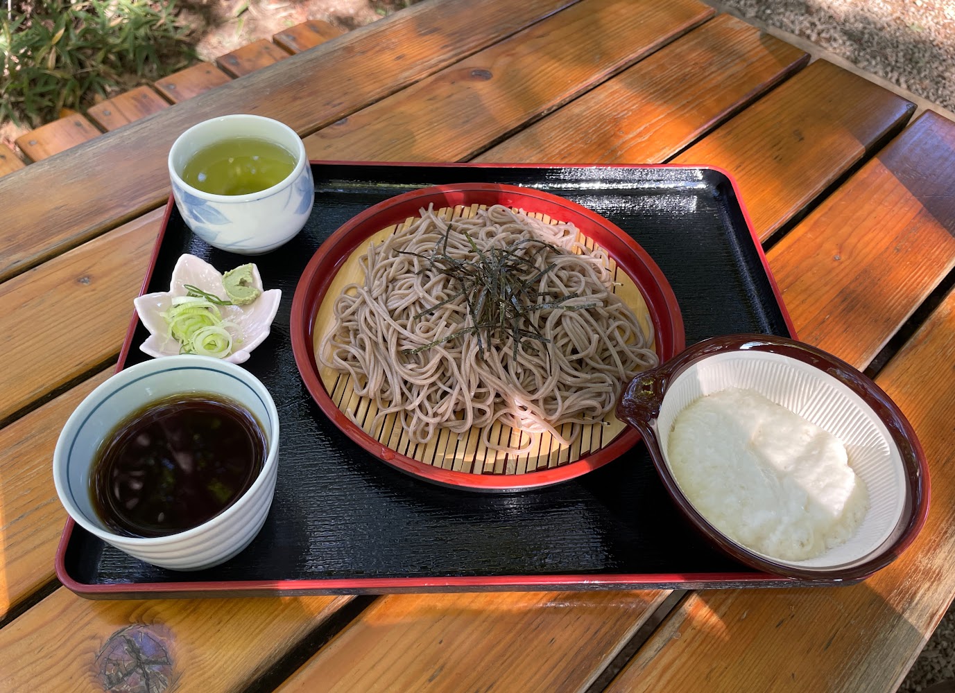 We had a late lunch at Ebisu Soba with delicious noodles. I had been worried about rain, and while we ate lunch at a low table next to a cute little garden, the skies opened up with hail. By the time we left, it had stopped. What a cozy experience!