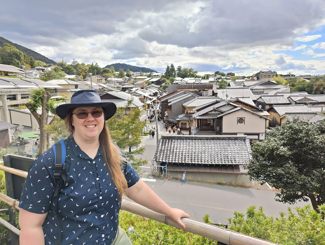 The temple itself is even larger! It's one of the largest wooden buildings in the world, and the current iteration was built in 1709. For a sense of scale, this is me posing next to one of the golden "horns" on the roof.