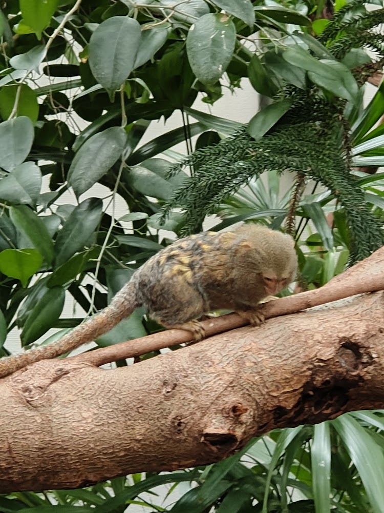 The inside exhibits were even more impressive! The animals weren't behind bars, but in open rooms that visitors walked through. Double doors and plastic sheeting kept them (mostly) in their intended habitats. The Pygmy Marmoset was so tiny, it could have easily fit in my hand! Conversely, the other two critters were huge and majestic!