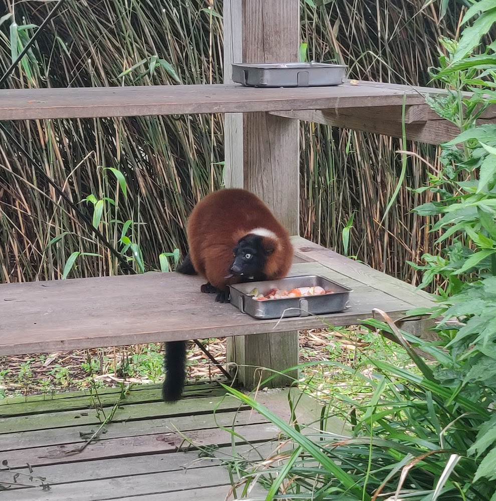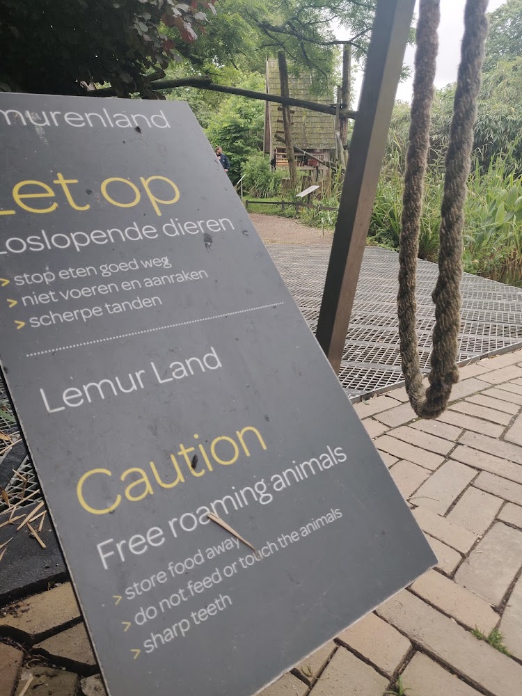 I appreciated the sign: "sharp teeth"! We were lucky enough to see the lemurs bounding around to get to dinner. Their tails are so long!