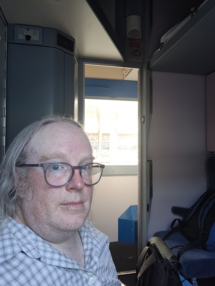 Unfortunately, our overnight train was also unbearably hot - 33C / 91F. At least the view out the window was nice and we had our own room this time.