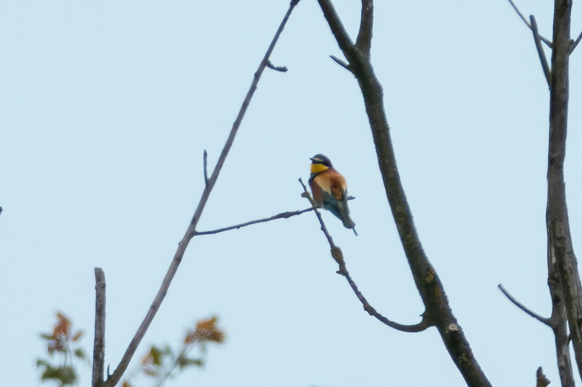 I had been particularly hopeful to see Bee Eaters this trip, but they tend to be in southern Europe so I knew it was a long shot. Fortunately, our guides knew a spot where they nest that used to be a tank base and is now nature. I was excited to get a (very distant) look at one! We waited near the nests in the holes in this hill, but none came back for us to see.