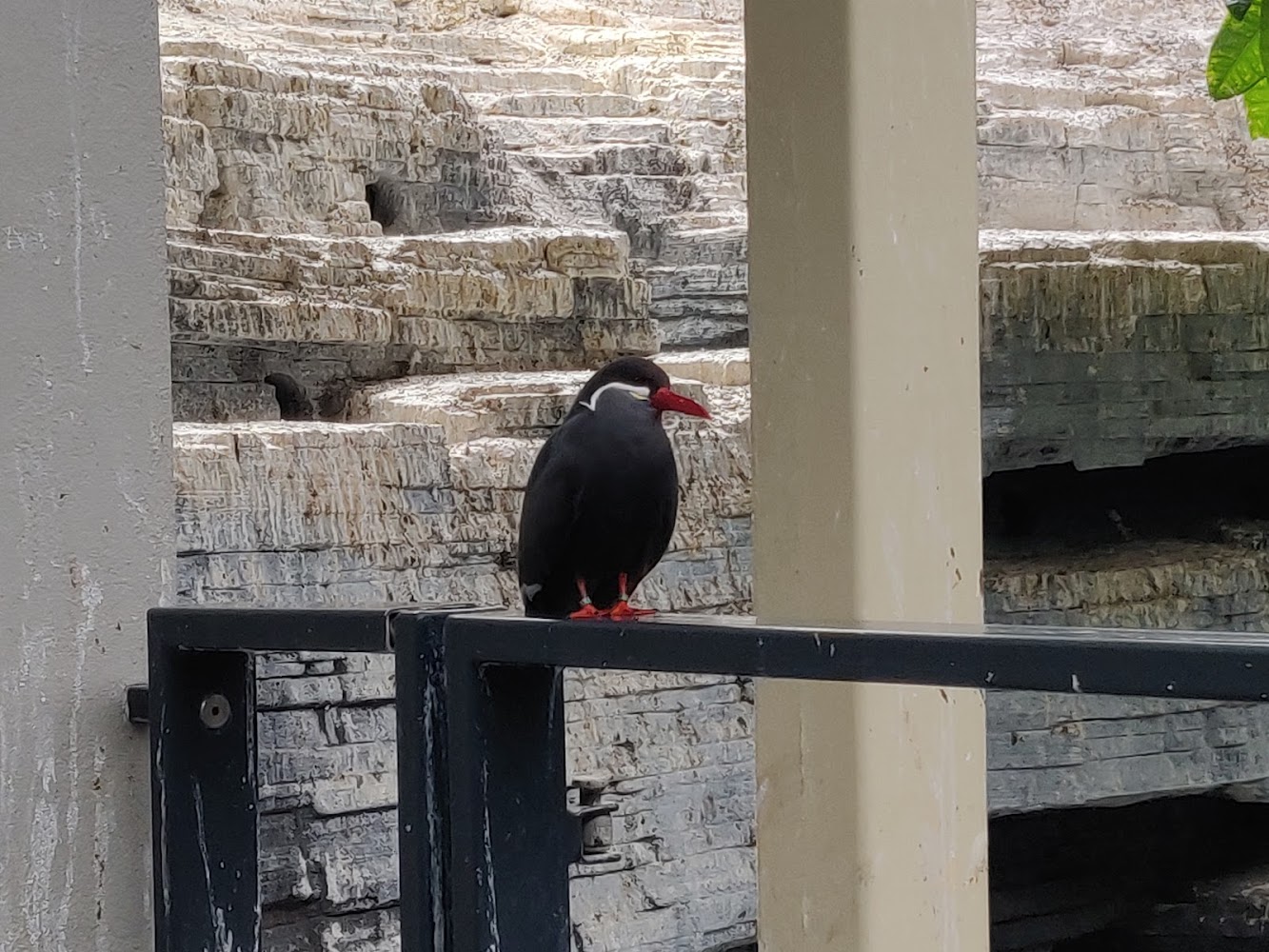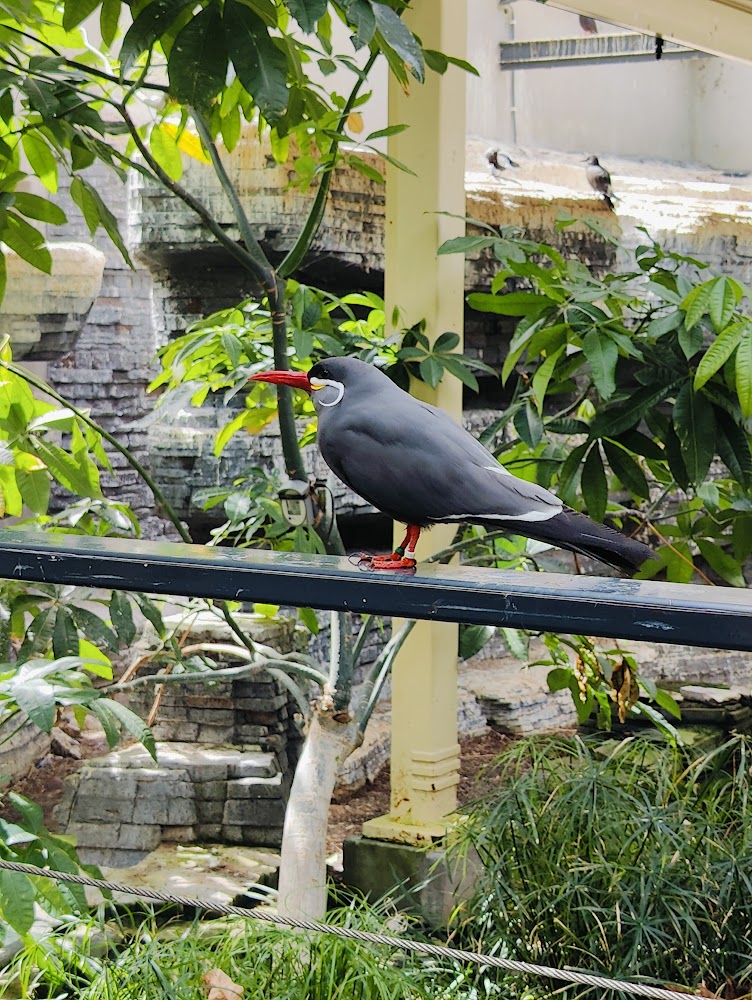 The Inca Tern exhibit was astonishing. Like the previous rooms, there was no barrier between us and the birds (and the screeching). They had the whole room to zoom around in! They landed on the fence nearby to check us out! They walked up and scrutinized us!