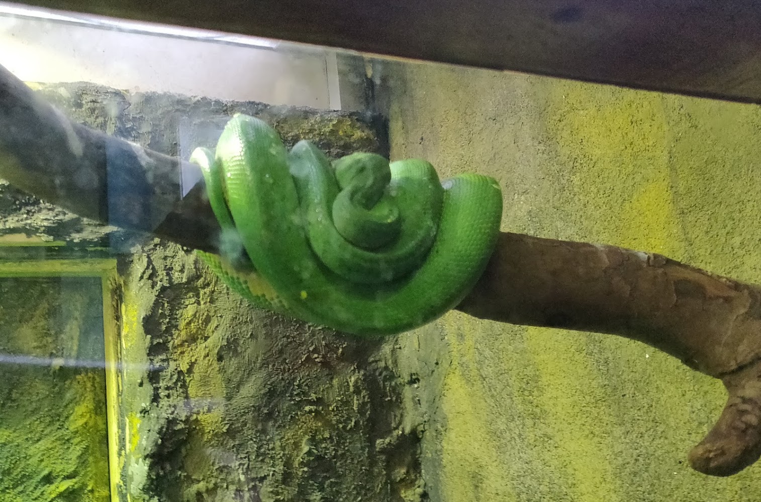 Lots of great reptiles! The Rhinoceros Iguana was enormous and very chill. Despite its appearance, that's not a snake - it's a legless lizard! The False Gharial is impressive (and closely related to non-false Gharials), and the Emerald Tree Boa is just lovely.