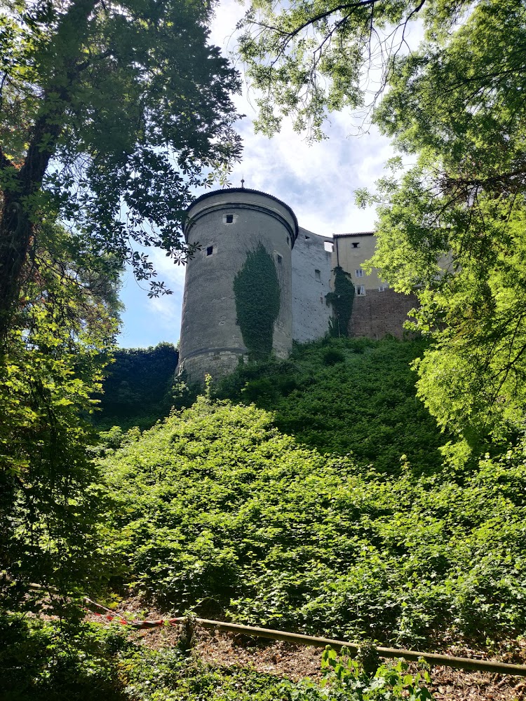 We didn't go into the castle, but walked through the shady green moat instead. Mysteriously we had to exit via a narrow walkway on the side of a hill that didn't look like a public path at all! The guards didn't challenge our escape though.