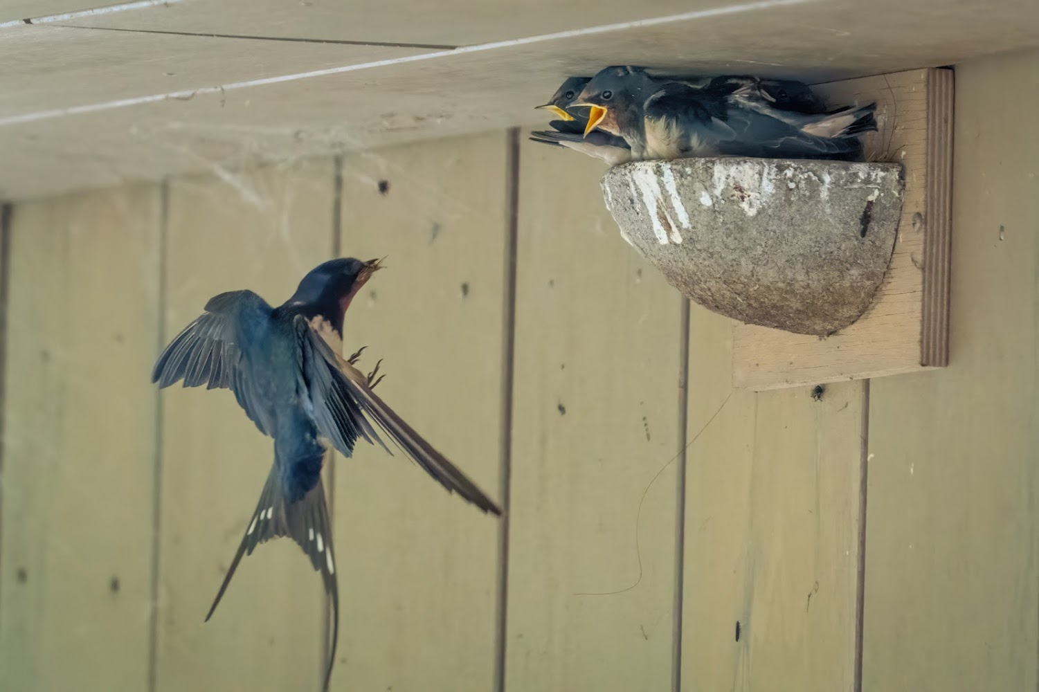 Next to the pancake house they had goats, our favorite parking lot birds (Wagtails) and nesting Barn Swallows. We got to watch the parent feeding the babies. What a treat!