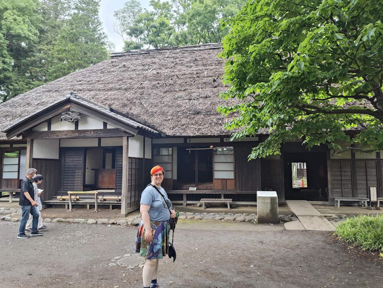 Some of the buildings were very old. The large farmhouse from the Edo period (1600s-1800s) highlights how they used different flooring for different purposes: stone floor for dirty shoes and messy work; wood for high traffic zones; and tatami mats for sitting and relaxing. The raised grain storage accessible via a ladder was a clever solution to keep mold and rats out.
