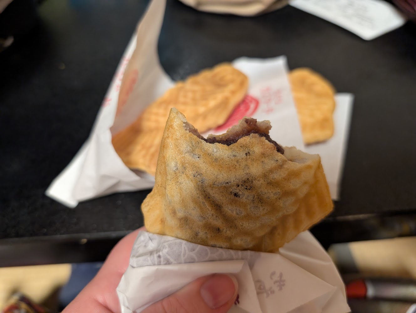 I was so excited for taiyaki, we checked into our hotel and turned right back around to go out and get it!