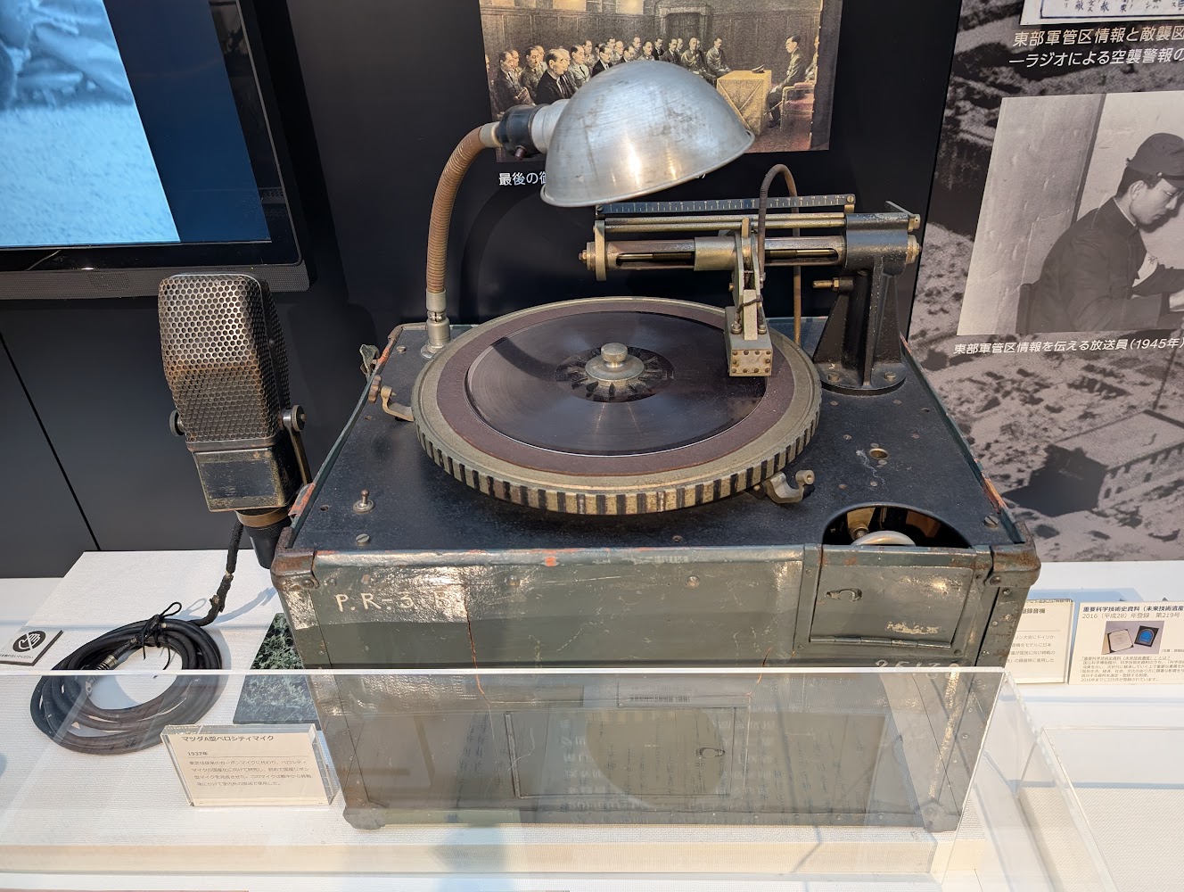 One of the most historically significant exhibits was the original recording of Emperor Hirohito's message announcing Japan's surrender at the end of WWII, and a machine of the same type it was recorded on.