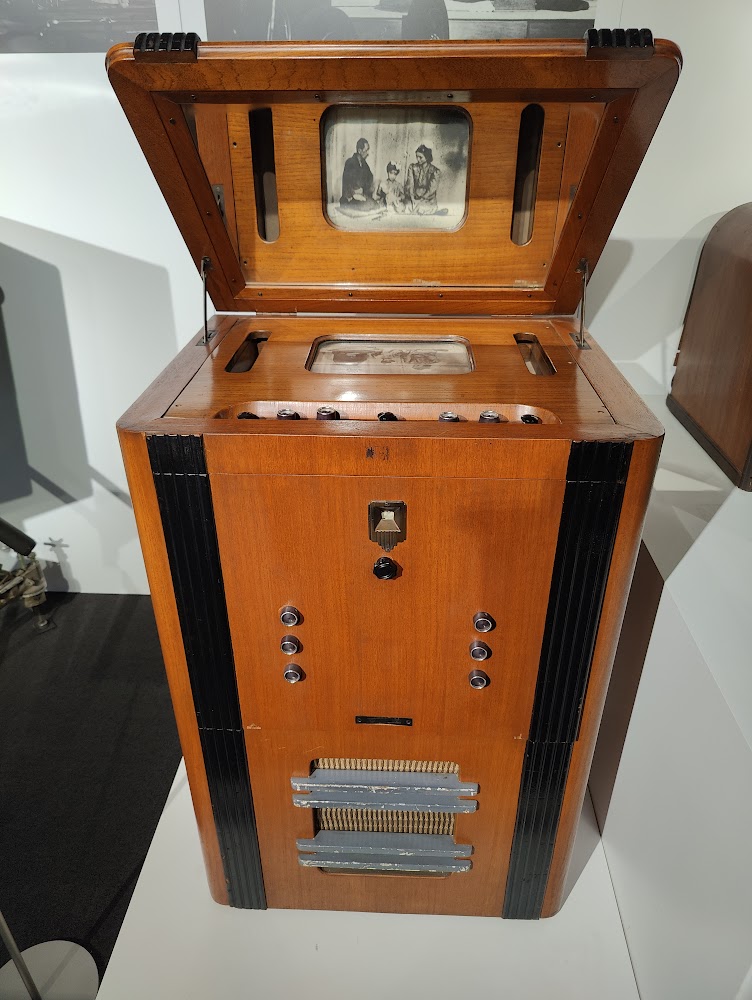 James was charmed by this extremely early TV where the tube was so large it was positioned vertically, and a mirror used to reflect the display to the viewer.