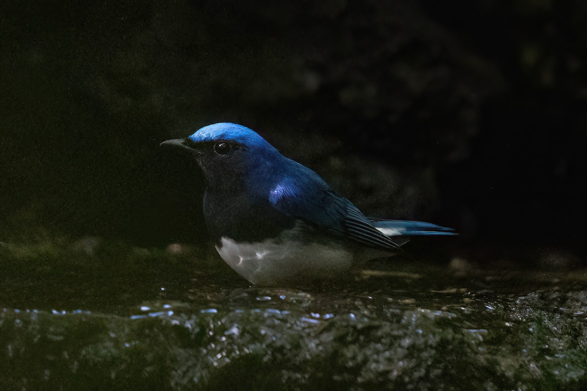 Next we went down to the lake visible from the slopes, and walked to a ravine with a waterfall, hidden in a residential area. It was clearly a popular spot with both birds and birders! Lots of birds coming by to take baths, but very shady and dark for photos.