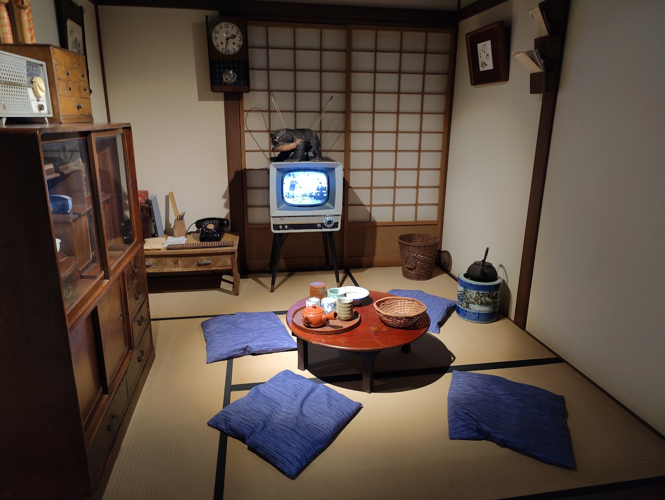 They had a reconstructed shopping street from the mid 1900s with a bunch of different shops. I thought the flooring setup was neat - customers came in from outside on the stone floor with dirty shoes, while the indoors shop staff used the tatami.