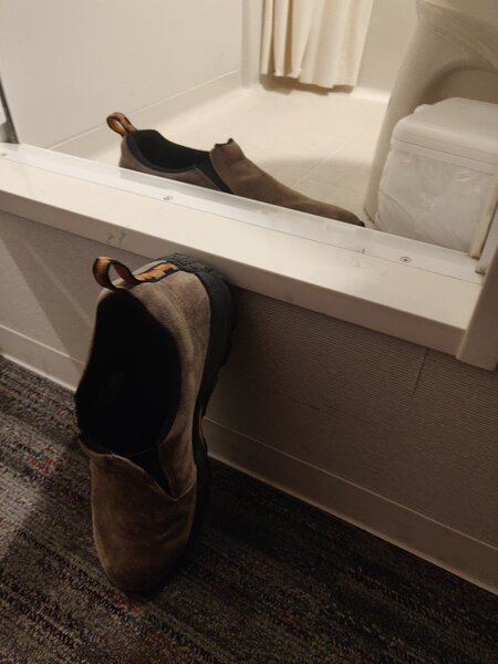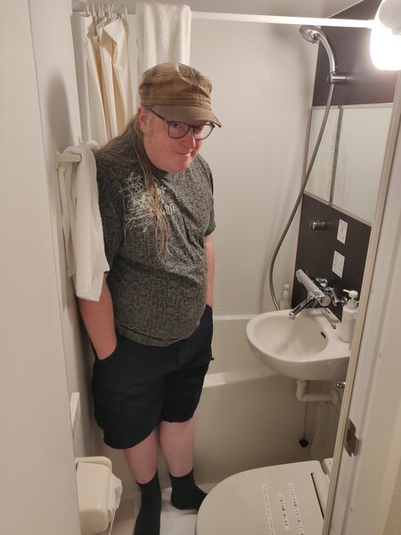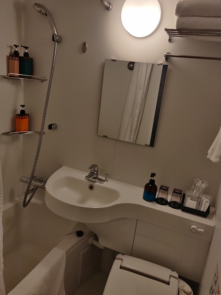 Our final hotel was absolutely the worst. I think it was a cheap hotel in an expensive location. It was Western-style with raised beds and TV, but barely enough room to walk around in and no room for luggage. Worst of all was the bathroom, which took the functional-and-cozy layouts of previous hotel bathrooms and shrunk it just enough to become unusably tiny. Additionally, the 10" step into the bathroom tripped James every time he entered or exited.