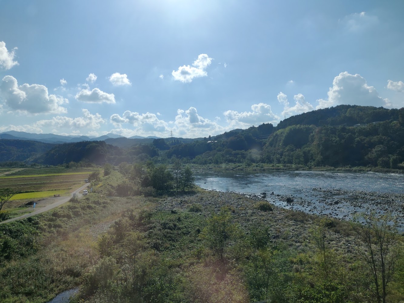 The train ride from Osaka to Tokyo passed through several alluvial plains formed by rivers and filled with agriculture. It seems like the hills are left wild, or at least tree covered.