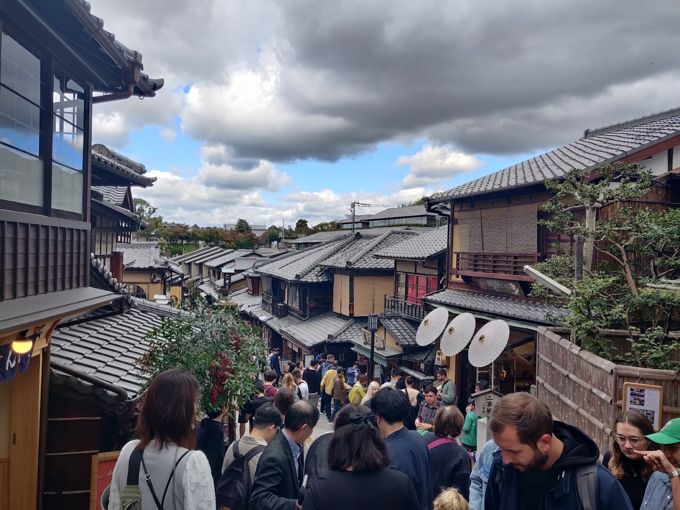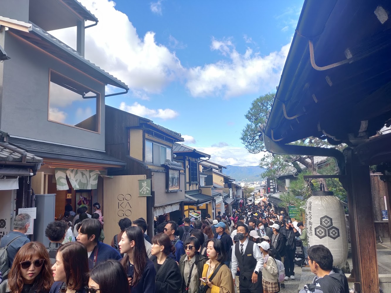 The streets between the temples are popular shopping streets. It was packed with people, many of whom were dressed up in kimonos! I was amused by the handful of cars trying to get down the street, making less progress than the people walking around them.