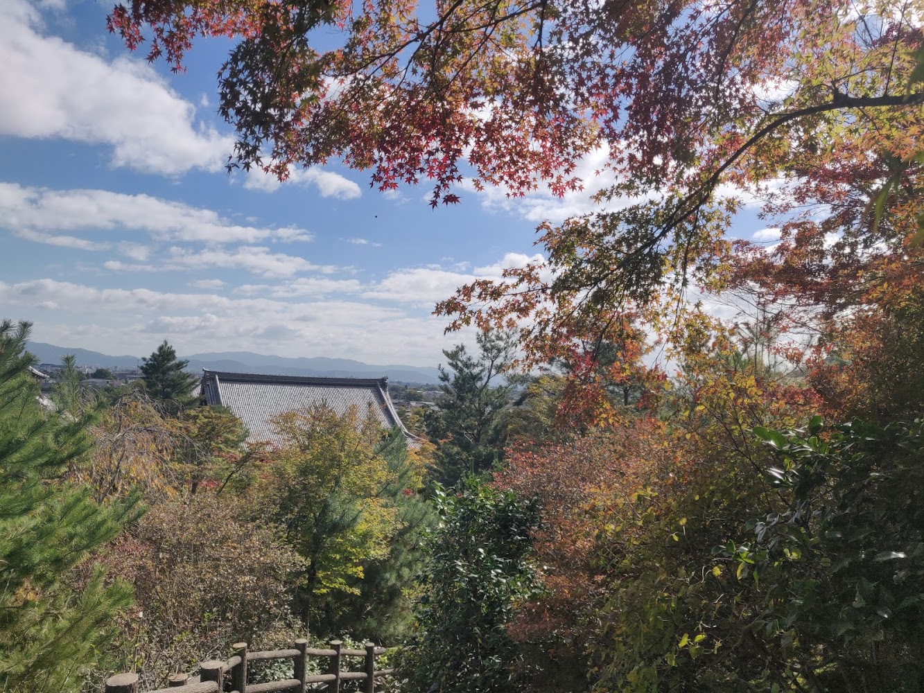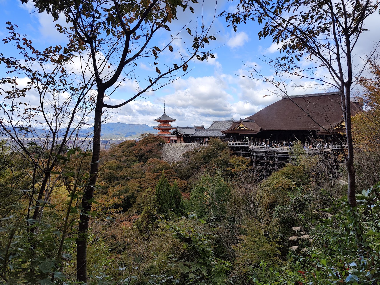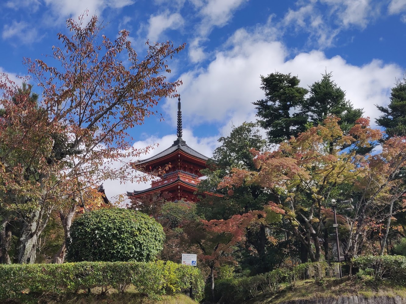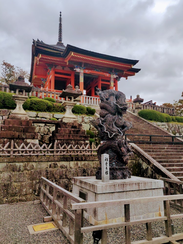 Kiyomizudera (清水寺) is probably the most famous temple in Japan. It was certainly the busiest! Like many Buddhist temples we visited, it's not a single building but several different temple buildings in a complex. It's built entirely with Japanese carpentry techniques that don't use nails.