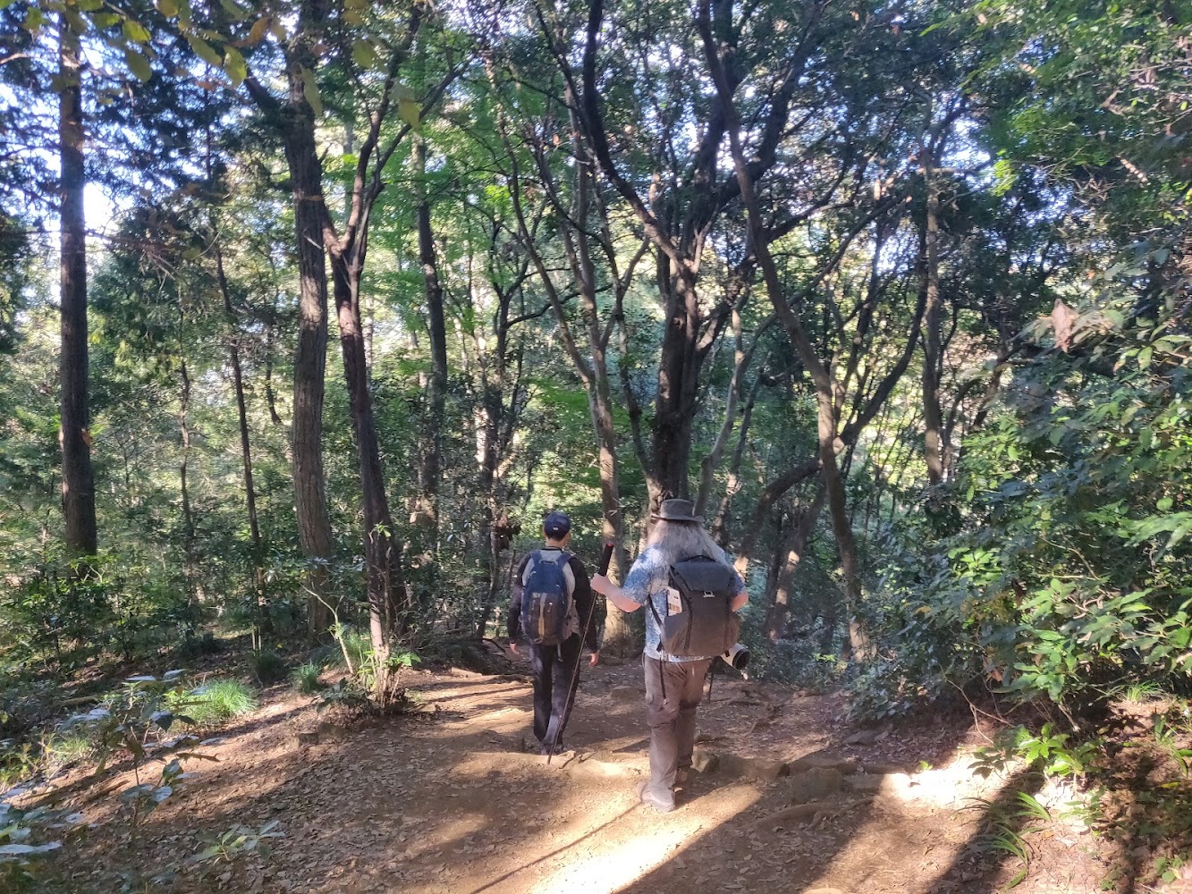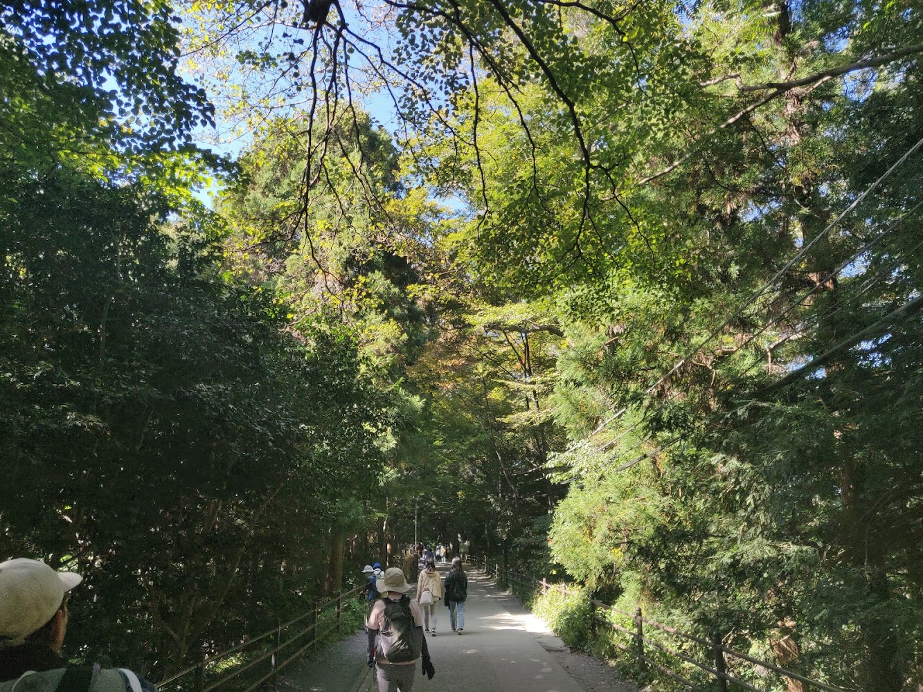 Mount Takao is right on the border of three ecological zones, and this path goes right along the ridge that separates two of them. Here you can see the evergreens on the right side of the path, and the deciduous trees on the left.