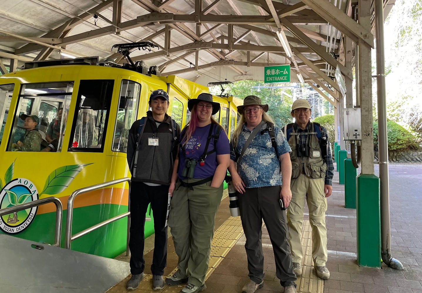 We had arranged to meet a volunteer English guide group called TENGU to show us around. They were wonderful! From left to right, our hosts were Mari-san, Keita-san, (James, Holly) and Hide-san.