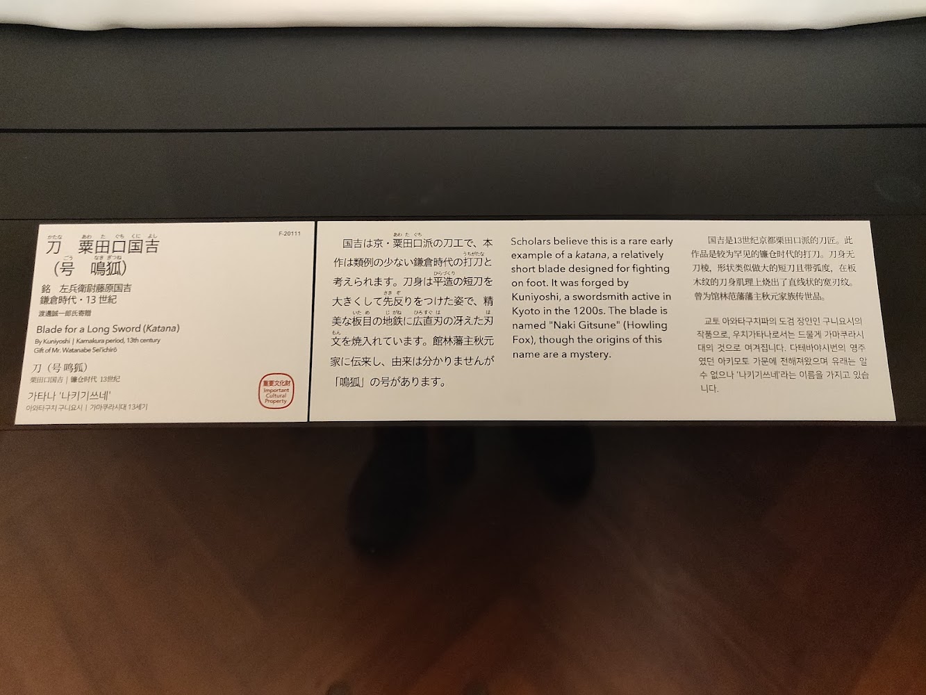 Fancy swords! There was a whole section on historic swords, both katana (for foot soldiers) and tachi (for cavalry). This is an early example of a katana.