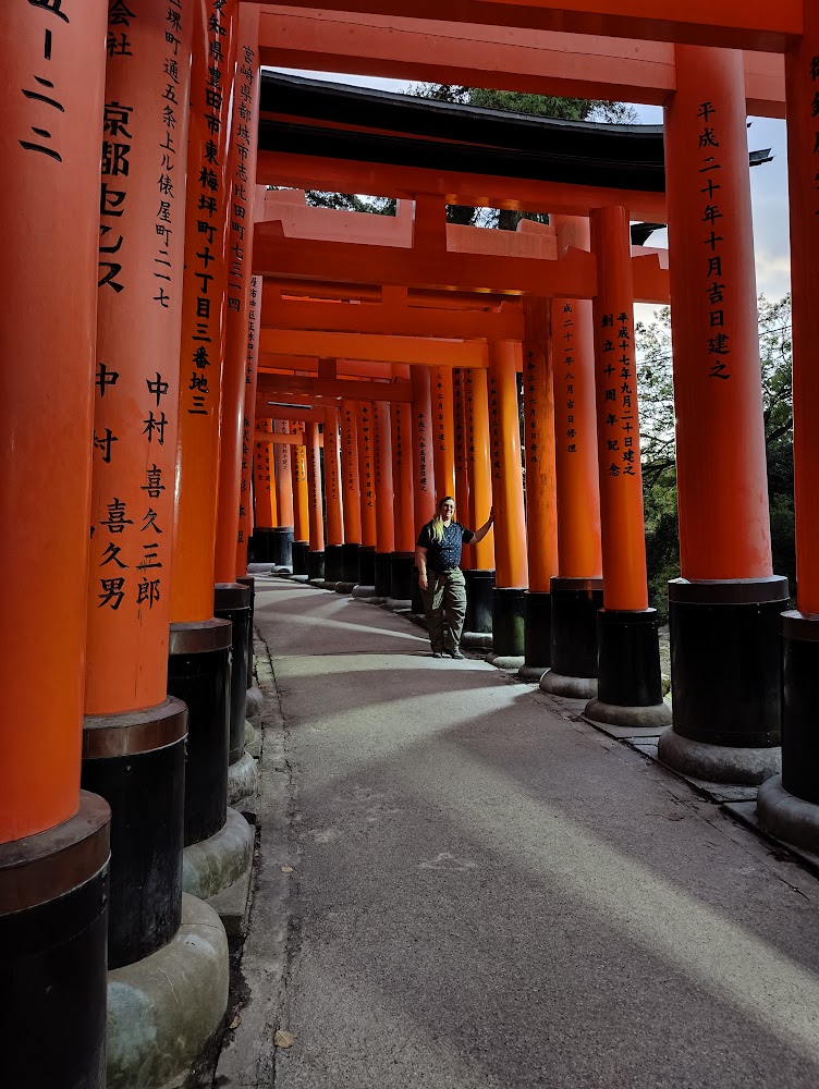 I tried to count how many torii there were, since they claim to have 10,000 but I lost track after a couple hundred - and after I turned the corner and realized how many more there were! Since Inari is the Shinto deity of business and prosperity, each torii was donated by a Japanese business and has the business' name and date on the back.