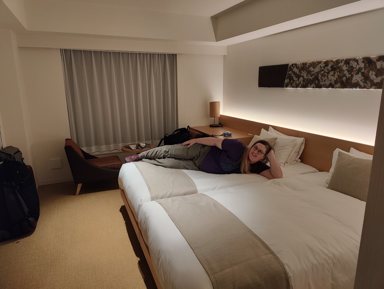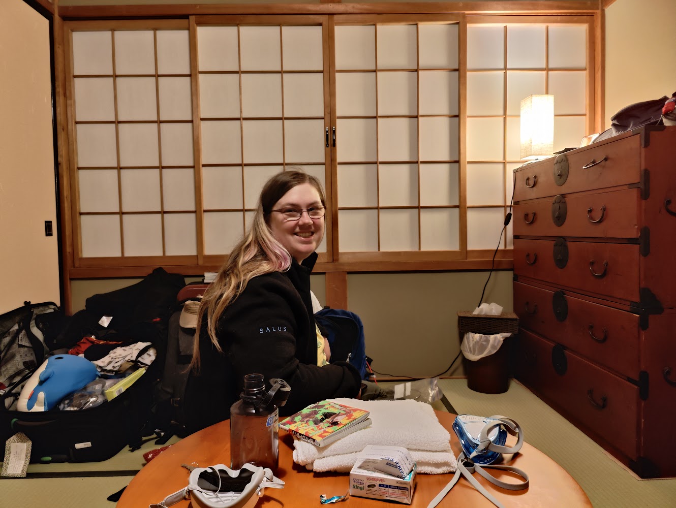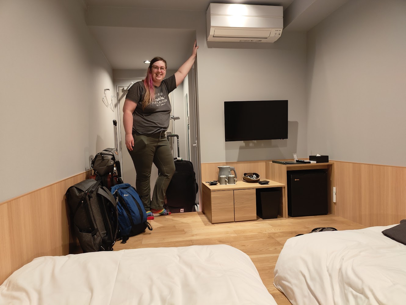 Our Osaka hotel was also western style, but much smaller than the one in Kyoto. We were able to open up our luggage but it took some doing.