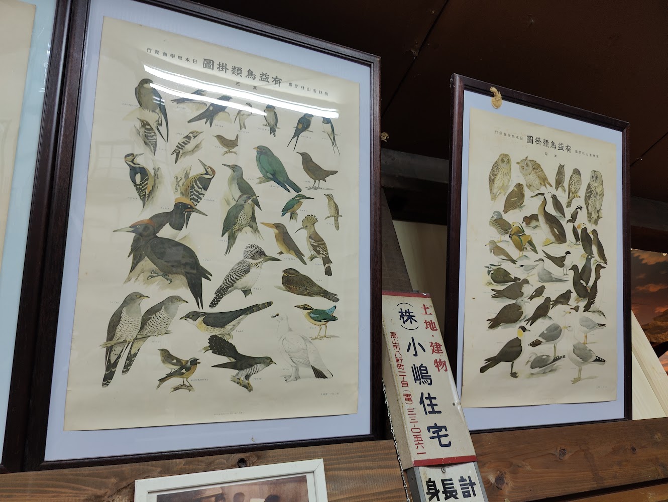 In the replica schoolroom was a kana typewriter, and several posters of birds! I had studied bird names in Japanese so I could read them, and was interested to see they were in hiragana instead of katakana, and written right to left (instead of horizontal text being left to right as is common now)
