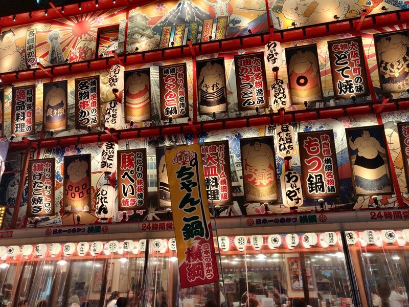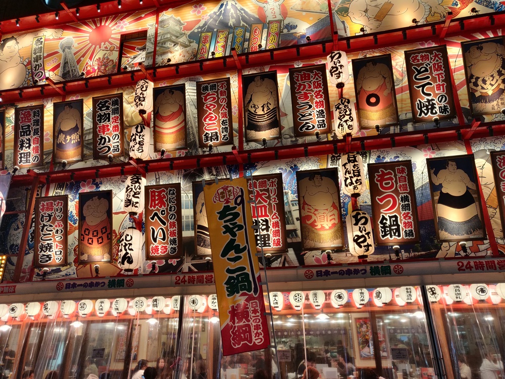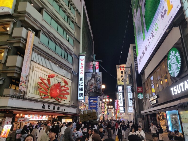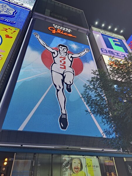 The Glico running man and enormous animatronic crab are both famous.