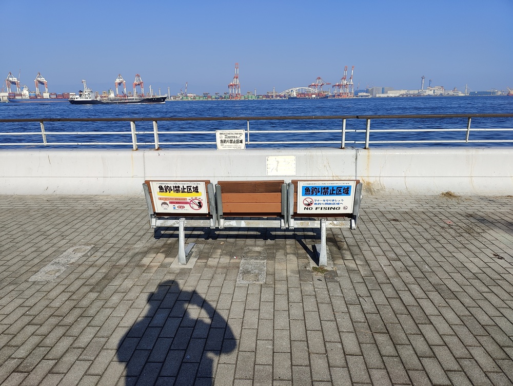 Our last day in Osaka we went to Nankou Bird Sanctuary. On our way there, we walked along an industrial waterfront promenade filled with folks fishing. It was clearly a popular spot, with over a hundred people equipped with picnics and chairs and ice boxes. This was in stark contrast to the sign that said No Fising [sic] and the two city staff walking, biking or sitting with a loudspeaker saying in multiple languages not to fish in the area. I have no idea what led to such an amusing setup.