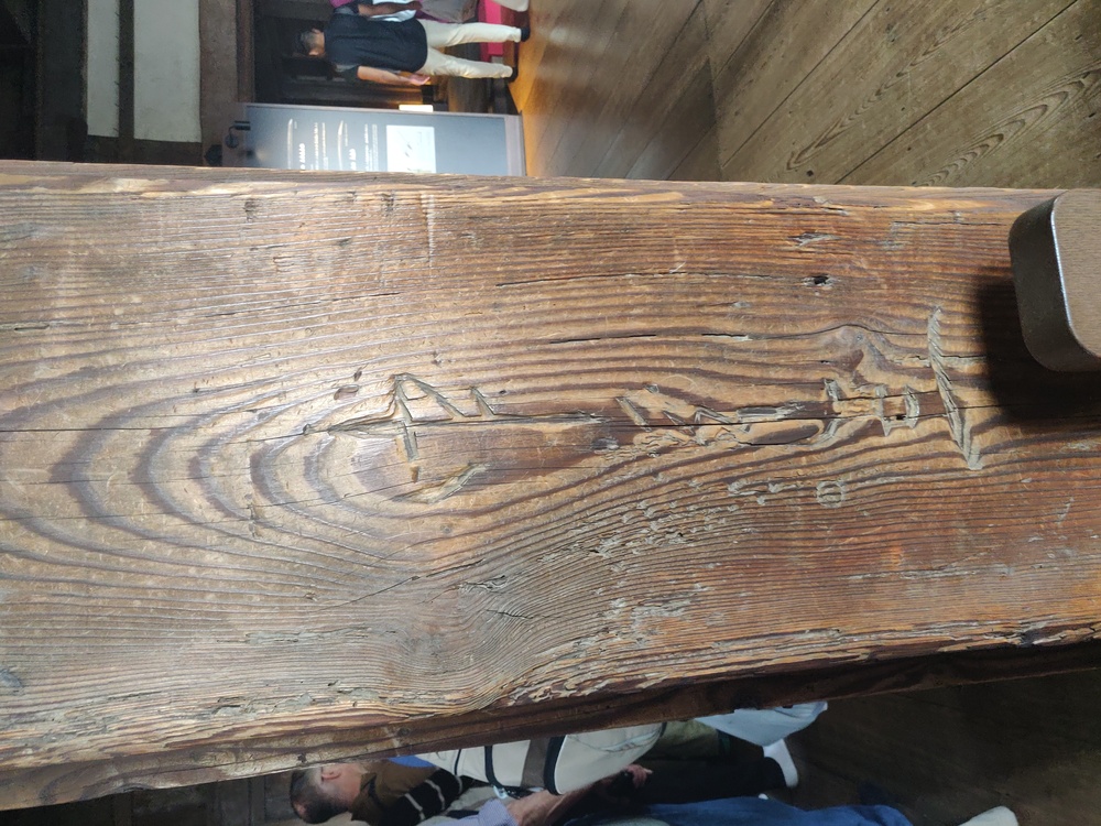 Remember how the castle had (mostly) never been destroyed? The caveat is that in the 1950s they carefully noted where all the pieces were, disassembled the whole thing, replaced some pieces and put it all back together again. It's the original! Look at this original beam!