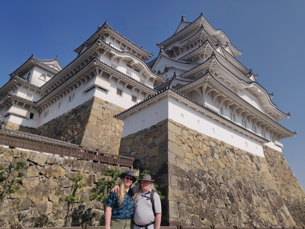 We took a day trip to Himeji! I continue to enjoy the Shinkansen, and was amused that the trains used to have pay phones available. Our standard breakfast was onigiri and milk tea from a convenience store (コンビニ). That day, I tried a french toast egg thing which was terrible.