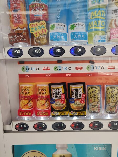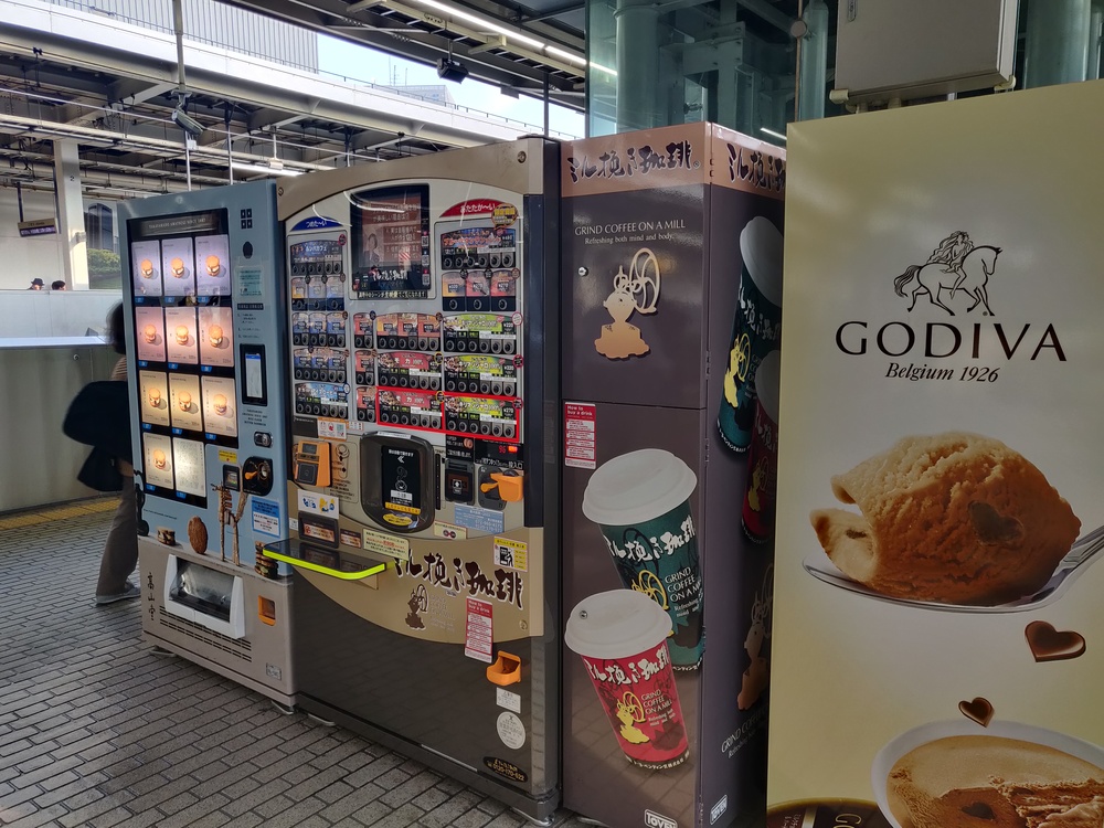 Vending machines were everywhere in Japan! Most of them were drink vending machines, with hot and cold tea and coffee in a variety of flavors. We only saw a handful of non-drink vending machines, like these that sold ice cream, soup and fresh squeezed orange juice.