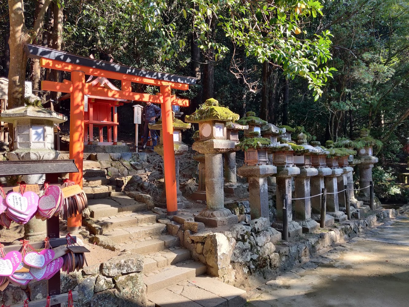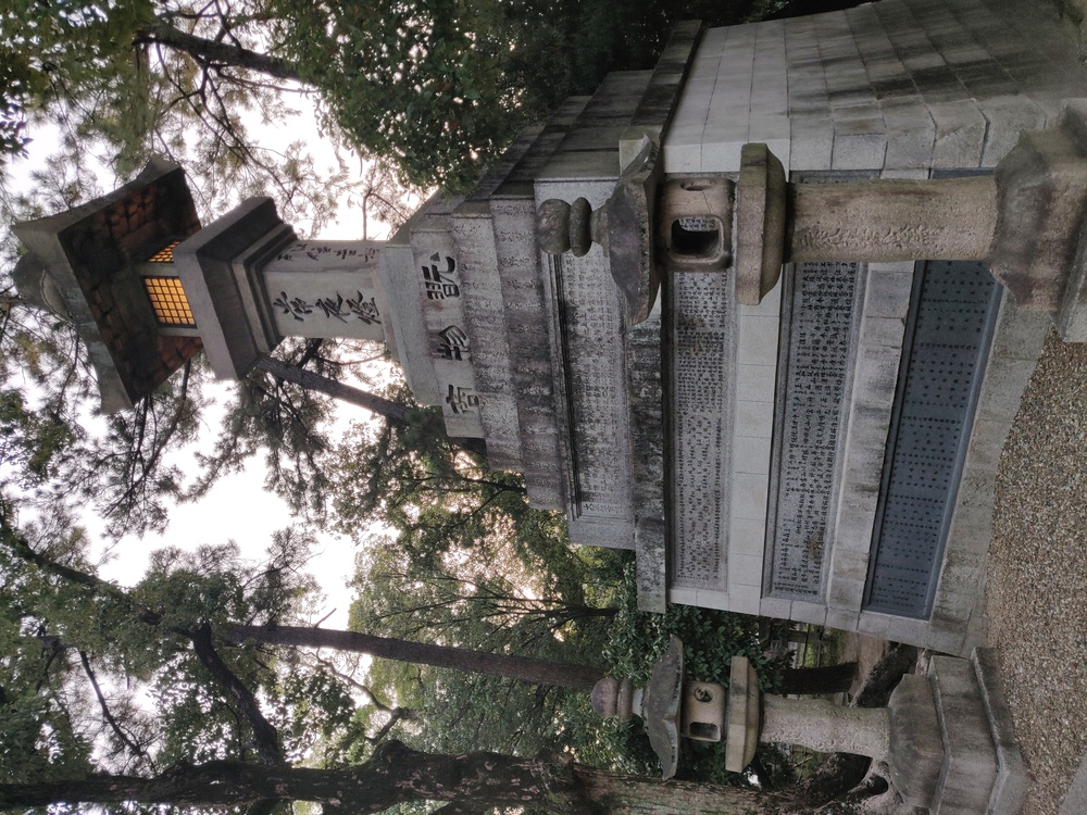 The stone lanterns were engraved with a tale about (and the names of) the financial patrons of the shrine.