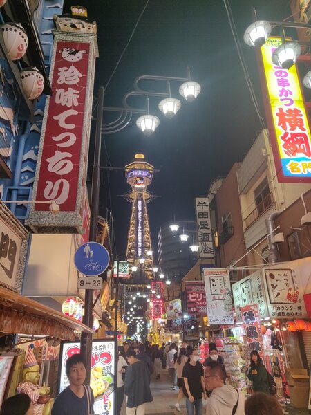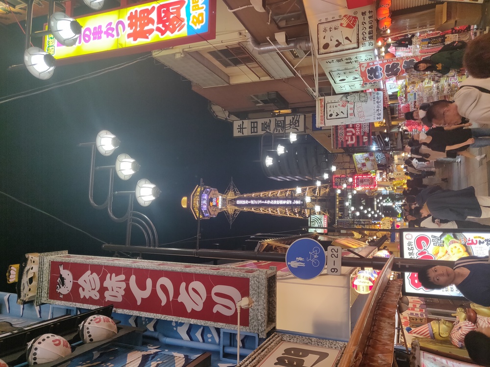 Our hotel in Osaka was next to Shinsekai (新世界, literally "new world"), a lively food and entertainment district around a tower. It was built in 1912 inspired by New York and Paris and for a decade even had an amusement park! One of the restaurants even let you catch your own dinner!