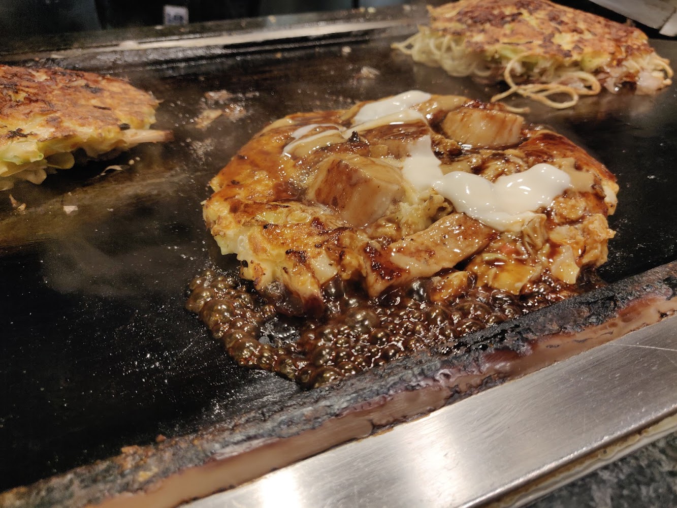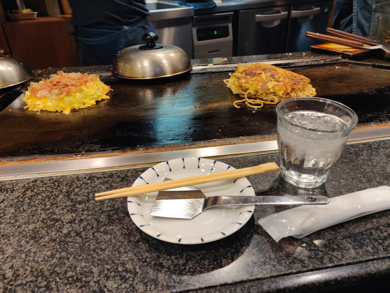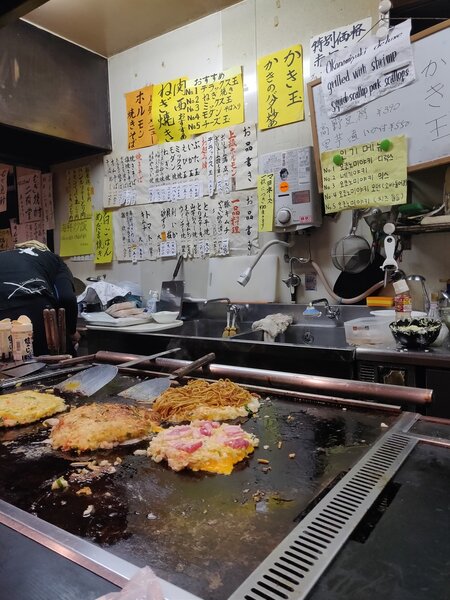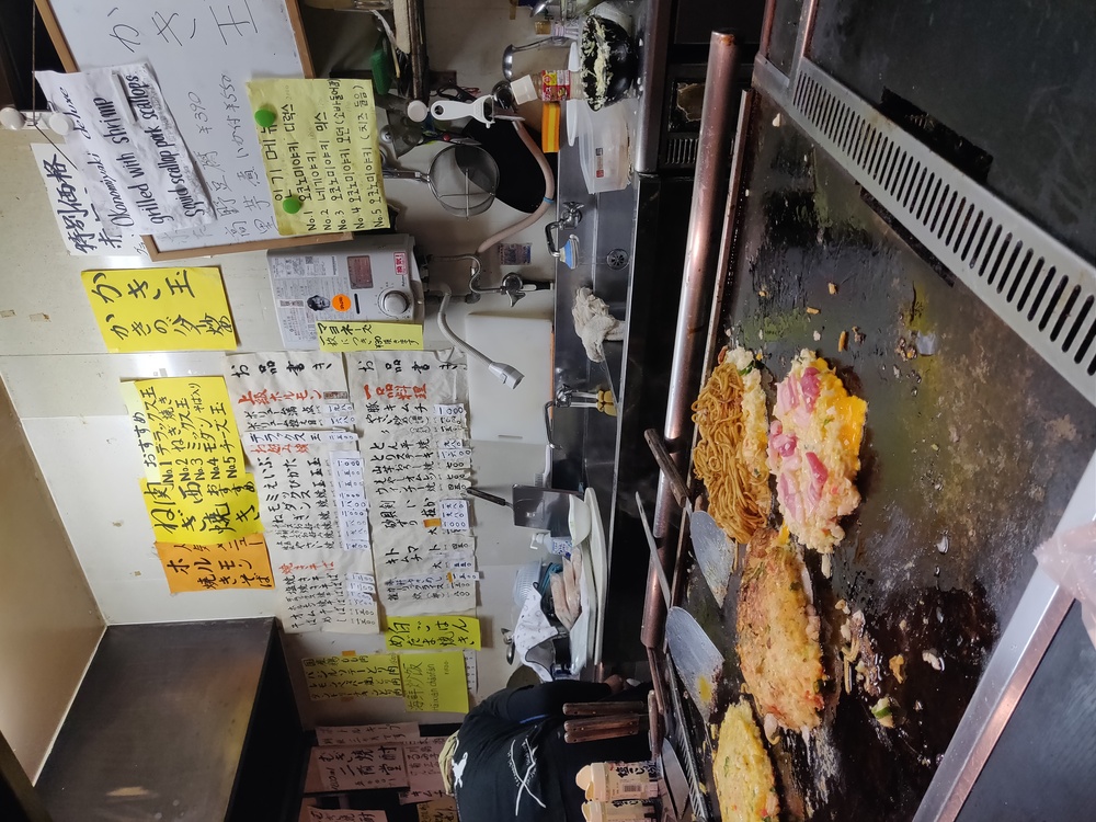 James found the Michelin Starred restaurant Okonomiyaki Mizuno for dinner. This is impressive because okonomiyaki is normally a cheap street food. It's a savory pancake/omelette with a variety of meats and vegetables added. They kept prices low (under $20 each!) by having high volume - there was a line out the door, they took our order in line, by the time we sat down our dinner was nearly ready, and once we finished we left immediately so the next person could eat. I'd had mediocre okonomiyaki once before, and this changed my mind on the food. I need to find some good okonomiyaki places in Vancouver!