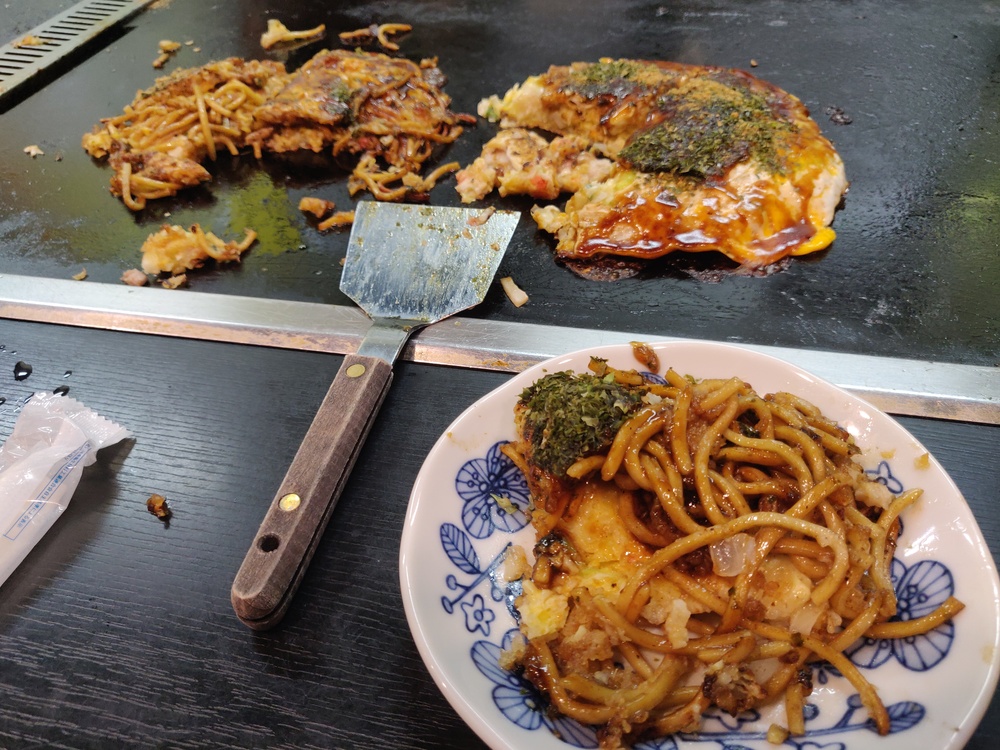 I wanted okonomiyaki again, so we ended up in a tiny mom-and-pop shop in a back alley. The menu on the wall was almost entirely in Japanese and the proprietor spoke just enough English to take our order, so we were glad for our Japanese studies! By comparison, a pair of Korean tourists who spoke just enough Japaneses to say "I'm Korean" came in after us and had a more adventurous time. The okonomiyaki itself was delicious.