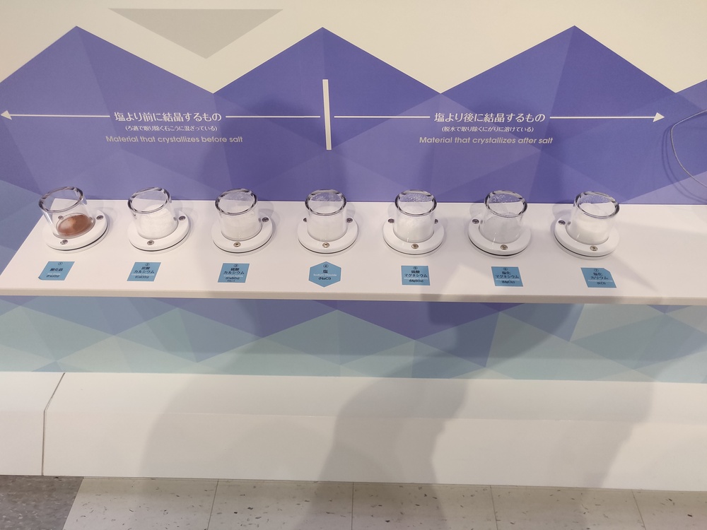 It had a lot of detailed and accessible information about the history of salt production around the world and in Japan. Because Japan has neither rock salt nor salt flats, they had to concentrate sea water and boil it to get salt. The museum walked us through the different innovations in seawater concentration and evaporation technology including what is used today.
