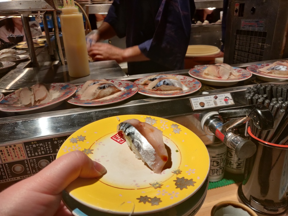 Just to say we had sushi in Japan, we had conveyor belt sushi in the airport for dinner.