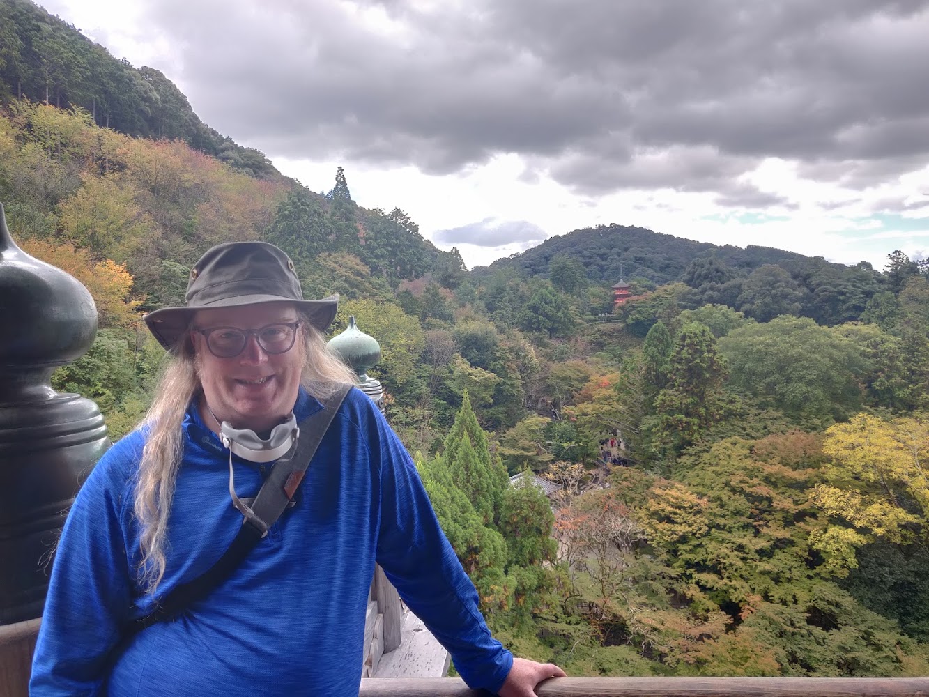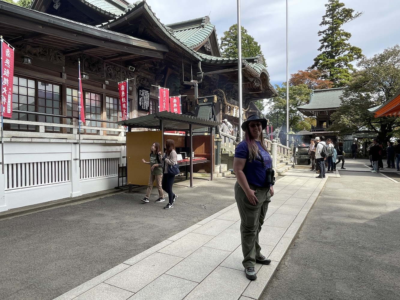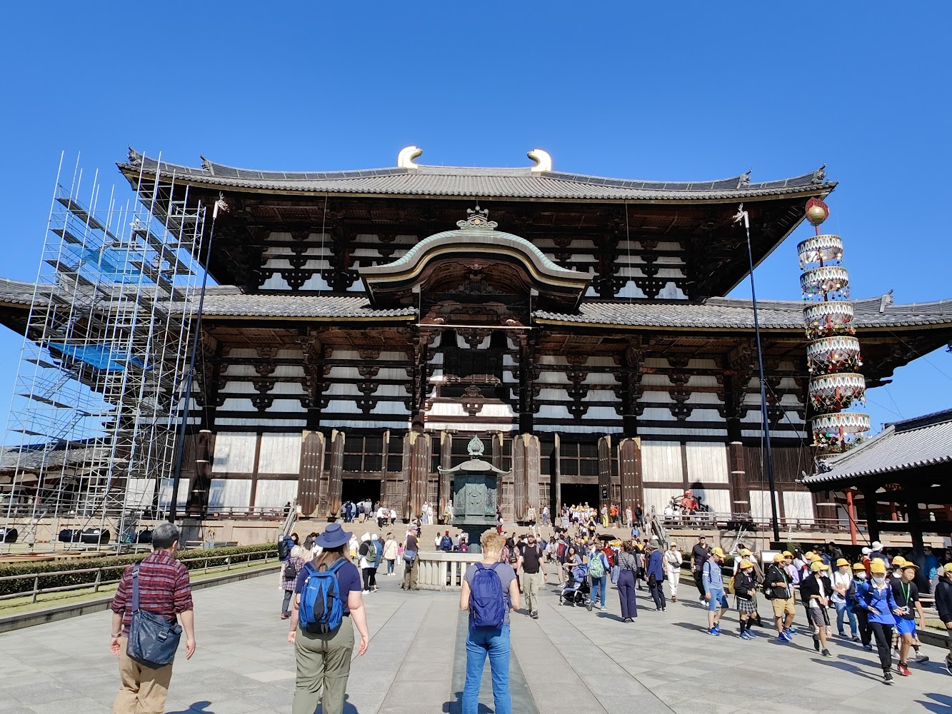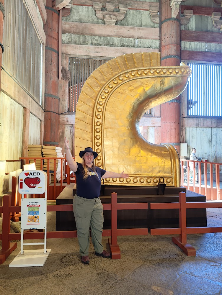 The temple itself is even larger! It's one of the largest wooden buildings in the world, and the current iteration was built in 1709. For a sense of scale, this is me posing next to one of the golden "horns" on the roof.