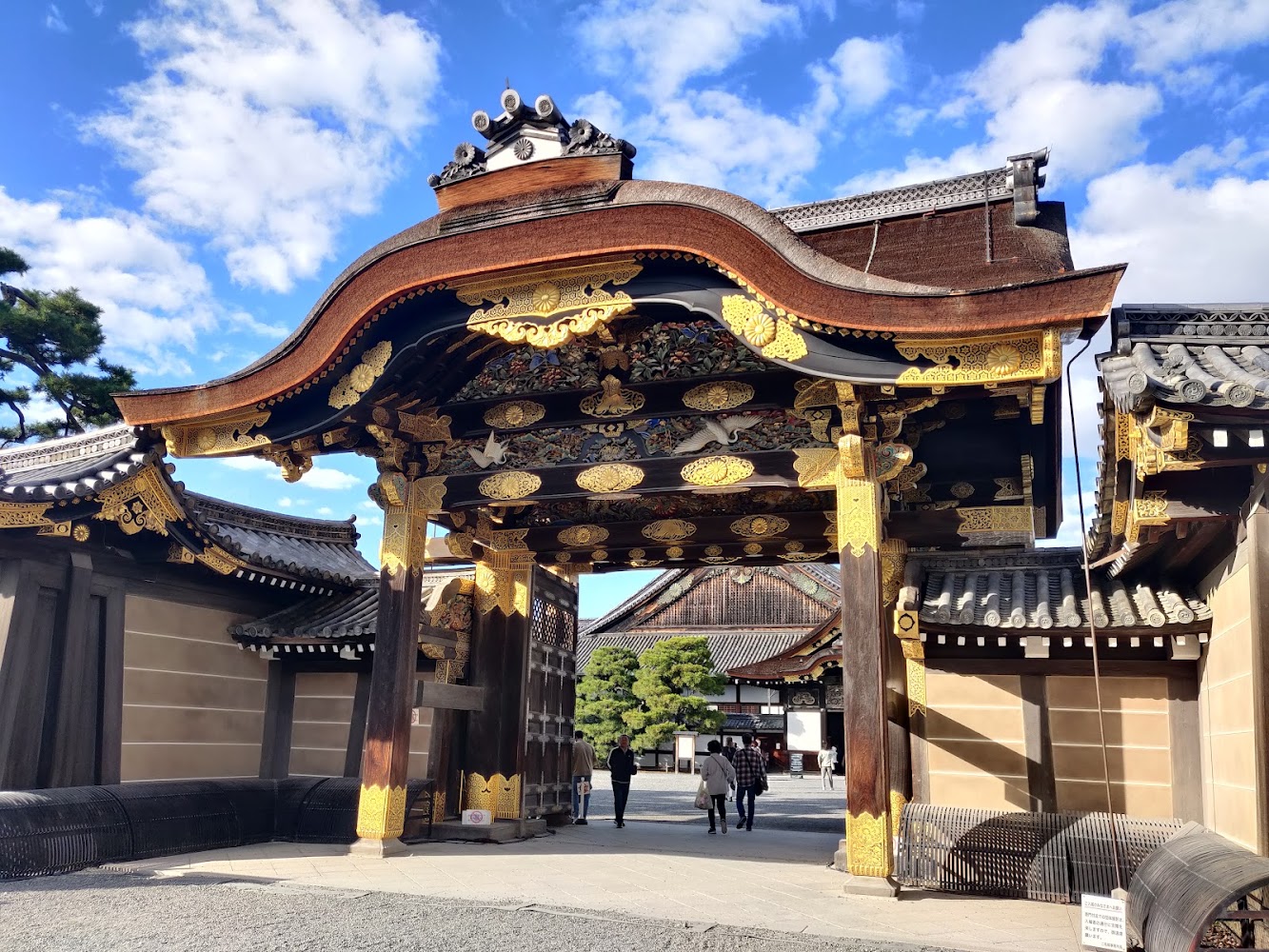 Nijo Castle (二条城) was unintentionally an amusing place to visit. It's a UNESCO World Heritage site, seat of the shogunate in Kyoto, and is full of beautiful old buildings. In contrast, the history of the place felt like "hey, we need a castle for a fancy event, do you have one?" "Yeah sure we have a castle in the closet, let me dust it off for you". Many of the buildings at the castle had been moved there for a single event, and there were several instances of buildings that were built for a single event then disassembled or relocated afterwards. Even this fancy gate was moved here from another castle!