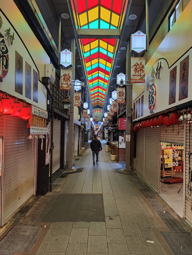 Japan has lots of covered markets, and James was particularly excited for Nishiki Market. Unfortunately, the only times we were there it was too early and just opening, or too late and mostly closed. We did get breakfast at a lovely cafe there though. I liked the contrast between the cute Japanese-style garden and the rusty corrugated metal wall.