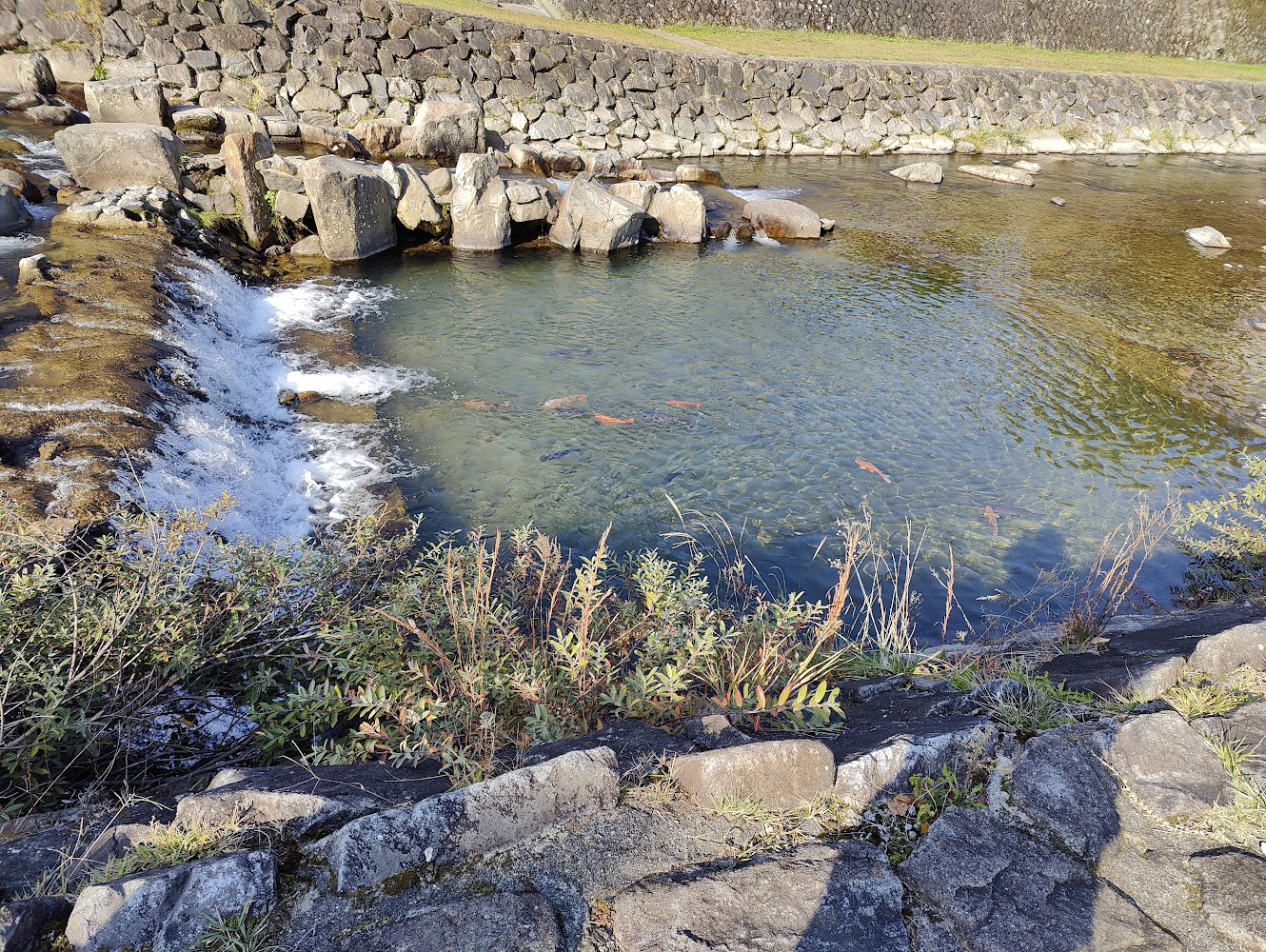 The place we got breakfast from had a loaner blanket so we had a picnic by the river and watched the birds. I was charmed by the Japanese Wagtails (セグロセキレイ) that were also getting breakfast and one of the many Black Kites (トビ) we saw during the trip.