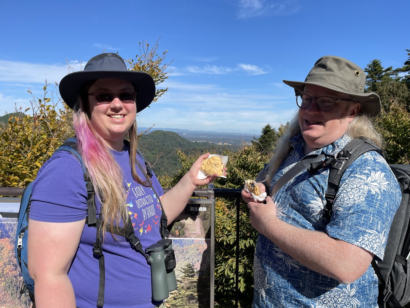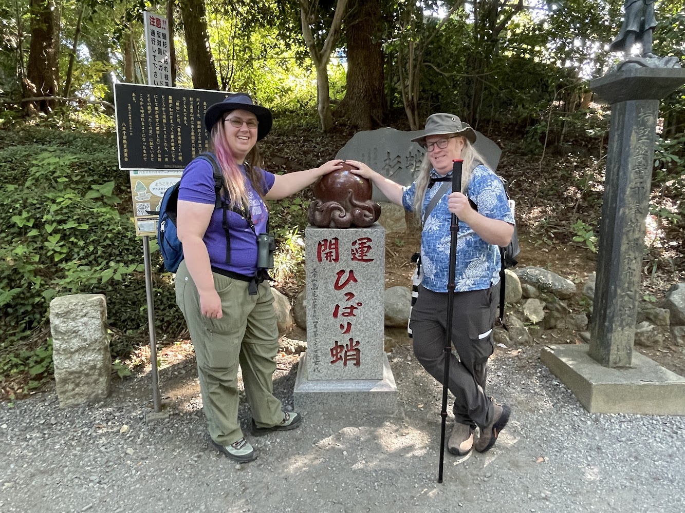 Mount Takao is full of beautiful views and interesting spots! We got explanations about the monkey park, the takosugi (タコ杉, a cedar tree with octopus looking legs and a story to go with) and the lucky octopus statue.