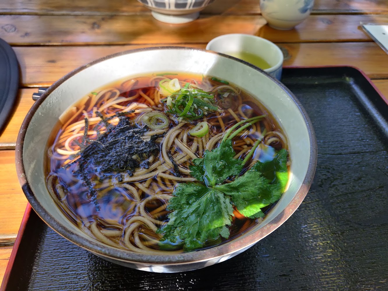 We had a late lunch at Ebisu Soba with delicious noodles. I had been worried about rain, and while we ate lunch at a low table next to a cute little garden, the skies opened up with hail. By the time we left, it had stopped. What a cozy experience!