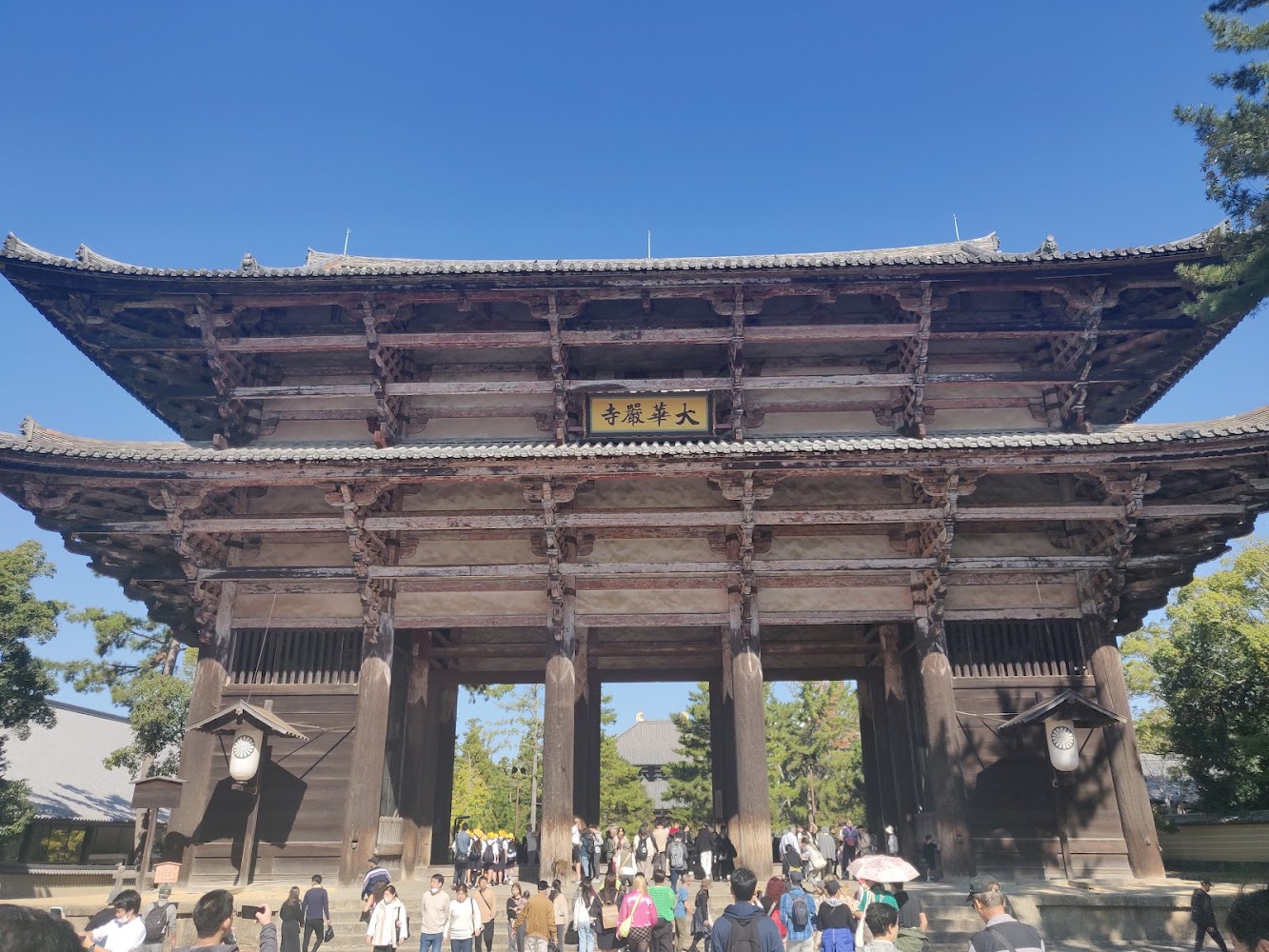 While travelling between Kyoto and Osaka we visited Nara! Nara is famous for two things. One is the absolutely enormous Todaiji (東大寺). This is just the Great Southern Gate - not even the temple itself!