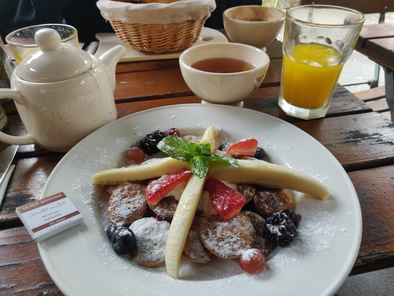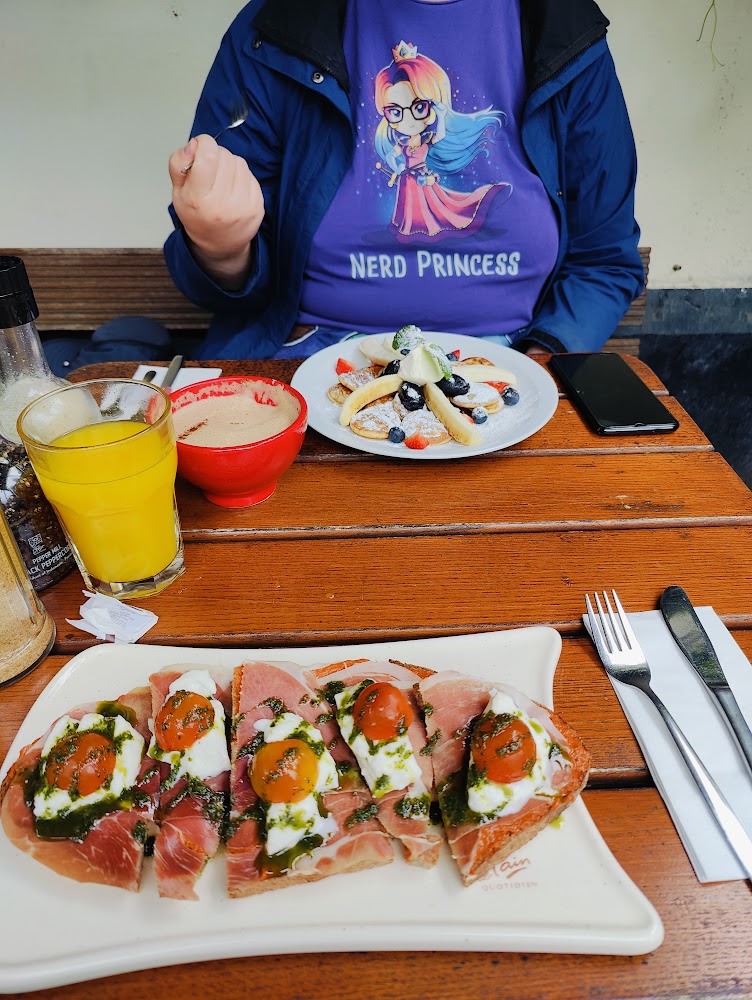 The second morning was wet, but that didn't stop us from having a delicious brunch on the patio of a lovely cafe near our hotel. I enjoyed local specialty poffertjes (tiny pancakes) and James got the fresh bread variety pack.