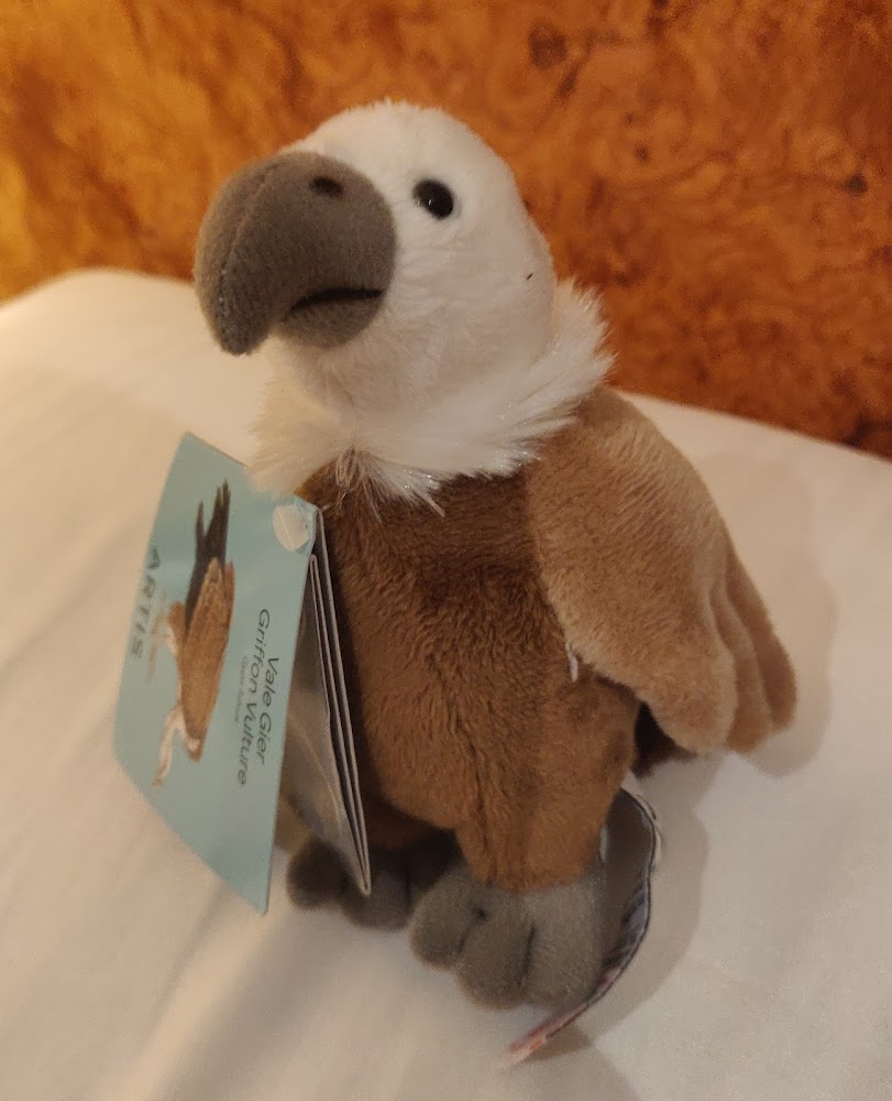 I looked at the enormous Griffon Vulture stuffie and decide I didn't have room in my suitcase, and I looked at the medium sized one but still didn't have room in my suitcase, and eventually got the tiny one, which did fit in my suitcase.
